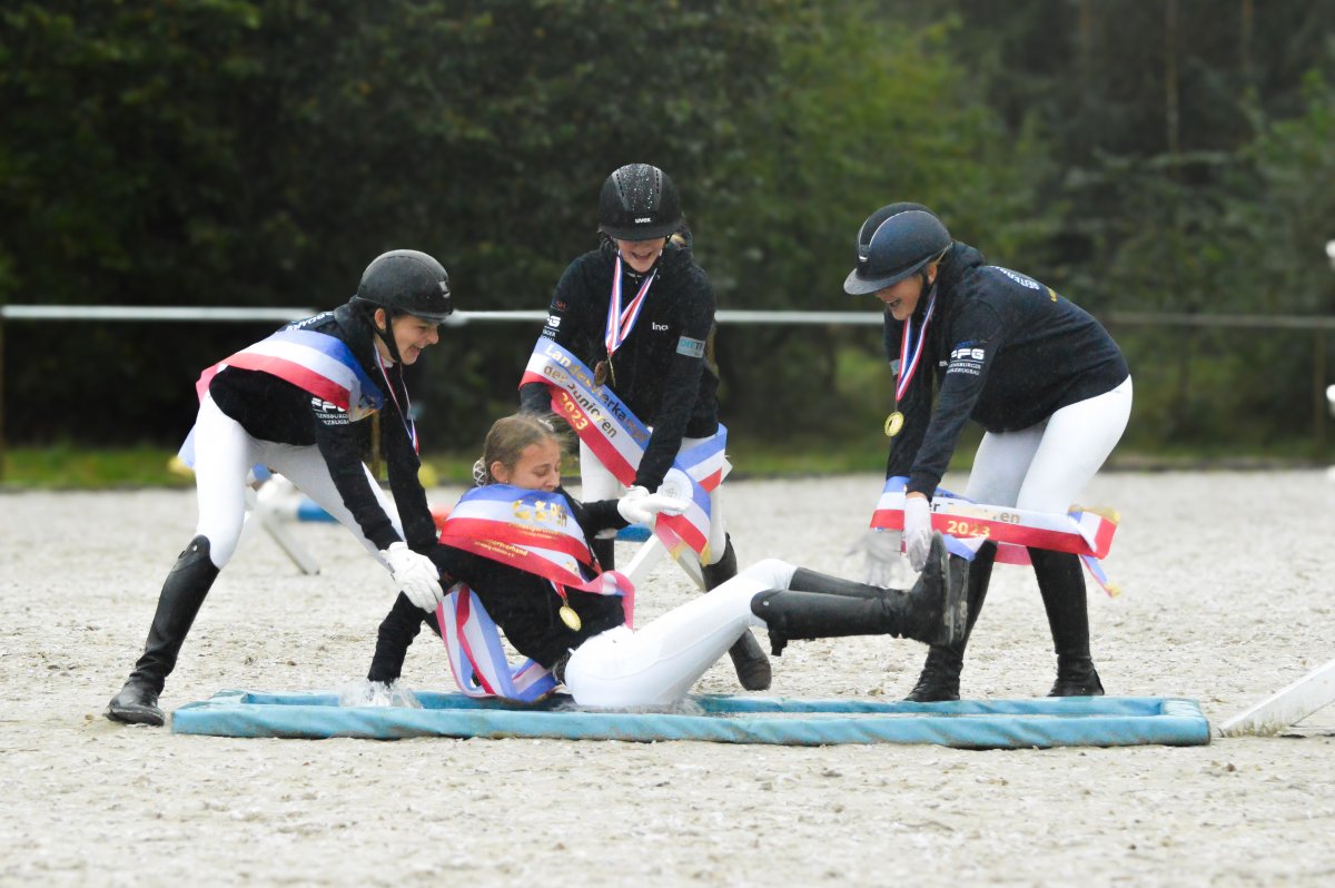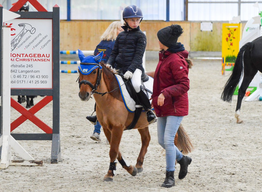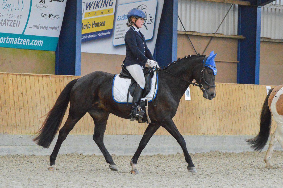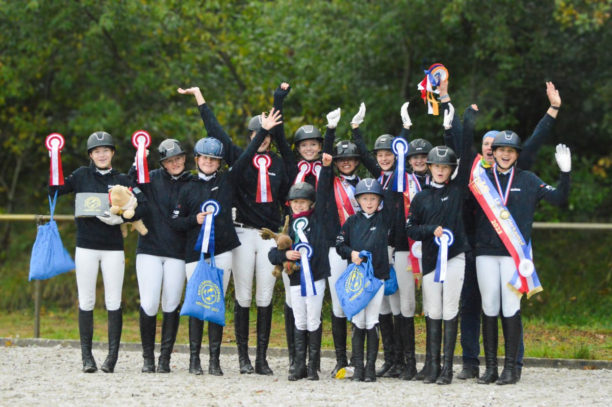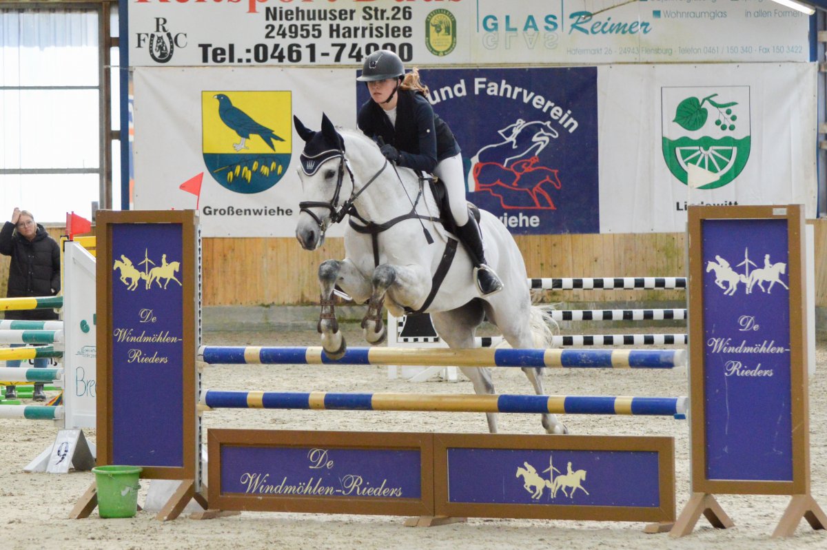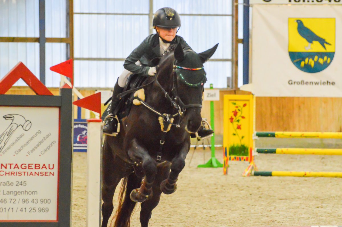 Ein ereignisreiches Wochenende liegt hinter den Teilnehmern des Landesvierkampfes 2023, der in diesem Jahr im Kreis Schlewig-Flensburg ausgetragen wurde. Rund 50 Nachwuchsreiter gingen für ihre Reiterbünde in den Disziplinen Schwimmen, Laufen, Springen – sowohl in der Einzel- als auch in der Mannschaftswertung – an den Start. Am Samstag Nachmittag startete der Wettkampf mit dem Crosslauf. Während die Junioren der "Großen Tour“ einen 3000 Meter Lauf absolvieren mussten, begrenzte sich die Strecke für die Reiter in der Nachwuchstour auf 2000 Meter. Direkt im Anschluss ging es weiter in die Schwimmhalle, wo die jungen Sportler erneut ihr Können im Schwimmbecken unter Beweis stellen mussten. Abgerundet wurde der Samstagabend mit einem geselligen Beisammensein in der Jugendherberge, wonach Kräfte für den nächsten Tag gesammelt wurden. Am Sonntag standen als erstes die Dressurprüfungen mit Pferdewechsel auf dem Programm. Bereits herbstlich geschmückt war die Vereinshalle in Großenwiehe, die mit besten Bedingungen für die Teilnehmer als Veranstaltungsort für den diesjährigen Vierkampf vorgesehen war. Für die Junioren galt es, zunächst mit dem eigenen Pferd eine Dressurprüfung der Klasse A* zu absolvieren, um dann im Anschluss noch ein fremdes Pferd vorzustellen. Auch die Nachwuchsreiter gingen in der Dressur der Klasse E an den Start, allerdings in einer Mannschaftsdressur ohne Pferdewechsel. Nach den Dressuren ging es im Parcours weiter. Für die Junioren wurde ein Stilspringen der Klasse A mit zwei Sternen aufgebaut, welches für das ein oder andere Paar einige Klippen bereithielt – schließlich war es für viele Pferde das erste Hallenturnier. Somit war der Jubel des Publikums auf den vollbesetzten Rängen groß, sobald die Teilnehmer des eigenen Reiterbundes fehlerfrei blieben. Auch die Nachwuchsreiter in der "Kleinen Tour“ durften sich im Parcours messen – hier in einem E-Springen mit Ausgleich. Im Anschluss fanden sich alle Teilnehmer zur Siegerehrung ein. Für den Reiterbund Nordmark war es ein besonders erfolgreiches Wochenende – Nicht nur durften sie den Wettkampf ausrichten, auch siegte die Mannschaft Nordmark II, vorgestellt von Britta Mühlenbeck, mit 15553 Punkten in der diesjährigen Landesmeisterschaft der Vierkämpfer. Mit 14739 Punkten folgte der Reiterbund Dithmarschen unter der Leitung von Stella Farchim, auf Rang drei mit 14113 platzierte sich die Mix-Mannschaft bestehend aus den Reiterbünden Nordfriesland, Rendsburg-Eckernförde und Pinneberg. Clara Marie Otzen, welche ebenfalls für den Reiterbund Nordmark an den Start ging, sammelte am Sonntag nochmal reichlich Punkte und sicherte sich somit den Titel „Einzel-Landesmeisterin der Vierkämpfer“. Mia Peters aus Dithmarschen freute sich über den Vizetitel, für Ina Losigkeit aus dem gastgebenden Reiterbund gab es in der Einzelwertung die Bronzemedaille. Auch der Reiterbund Nordfriesland hatte allen Grund zum Feiern. Nach erfolgreich absolvierten Disziplinen, sicherten sich die Nachwuchsreiter den Mannschaftssieg. Platz zwei ging an den Reiterbund Dithmarschen, auf Rang drei platzierte sich die Mix-Mannschaft Dithmarschen-Nordfriesland. In der Nachwuchstour brillierte Alva Maj Nissen aus Nordfriesland, die kurzerhand die Einzelwertung für sich entschied. Dicht auf den Fersen war ihr Matha Sophie Breiter aus Rendsburg-Eckernförde, die am Ende auf Platz zwei rangierte. Paula Kampen vom Reiterbund Pinneberg ergatterte sich die Bronzemedaille. „Wir hatten ein fantastisches Wochenende mit toller Stimmung und sind sehr dankbar, dass wir den Vierkampf ausrichten durften. Bereits die Planung im Vorfeld hat durch das gut strukturierte Organisationsteam gut geklappt, sodass für eine rundum gelungene Veranstaltung auf die Beine stellen konnten. Besonders bedanken möchte ich mich an dieser Stelle auch nochmal bei unseren Sponsoren, die diese Veranstaltung so tatkräftig unterstützt haben, und an den Reit- und Fahrverein Großenwiehe für das Bereitstellen der Anlage.“, rundet Britta Mühlenbeck, Jugendwartin des Reiterbundes Nordmark, die Veranstaltung ab.