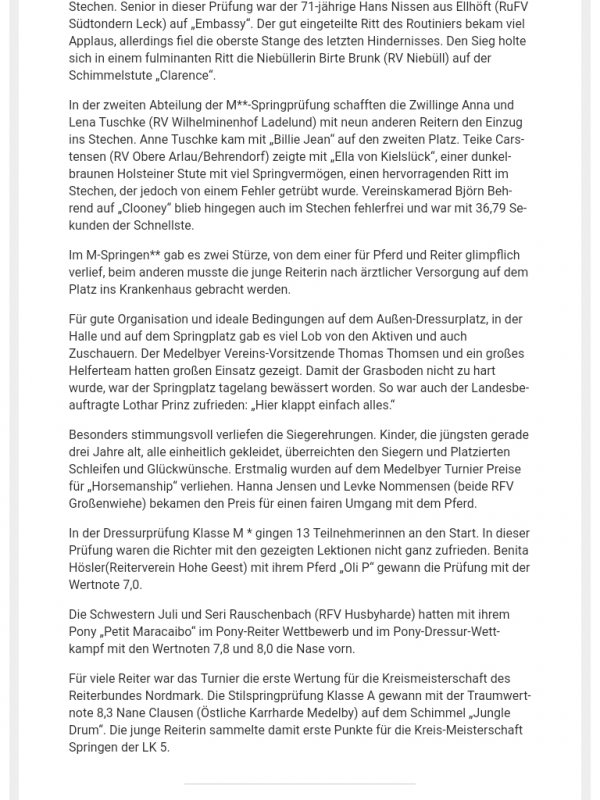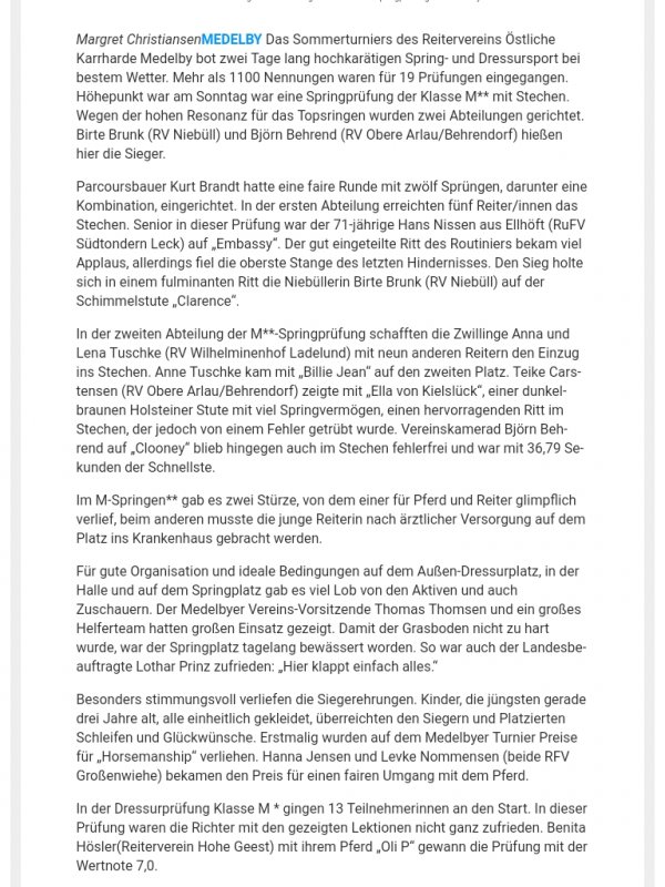 Erfolge in Luhmühlen von Reitern vom Reiterbund Nordmark: